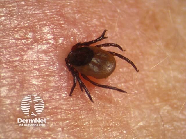 Ticks are very important vectors of systemic disease and ingest blood from diverse vertebrate hosts. The ticks wait on tall grass or bracken during spring and summer. They are attaracted to the host by sweat, white colour and body heat. They look for a protected site to feed such as a skinfold, engorge themselves with blood and drop off a day or so later. The bites are not painful. They may induce foreign body and hypersensitivity reactions, usually a red papule at the bite site. The lesion may persist for months forming a granuloma. The most effective tick repellents are permethrin applied to clothing and DEET on exposed skin surfaces.
