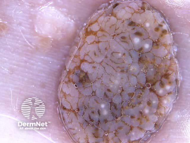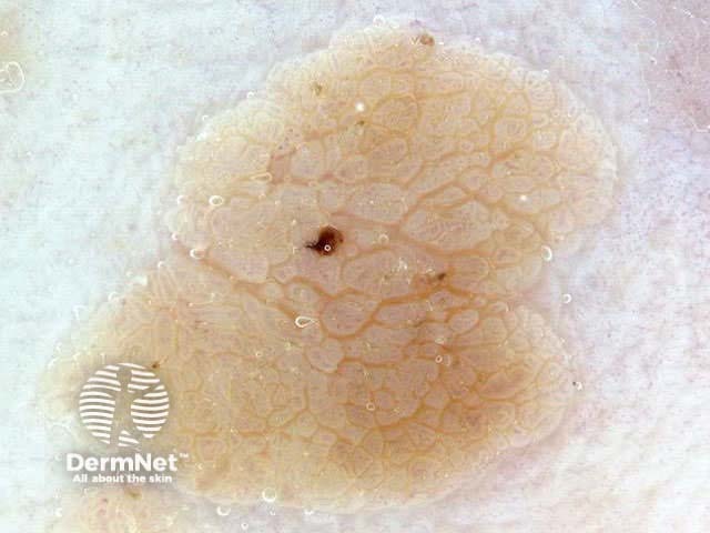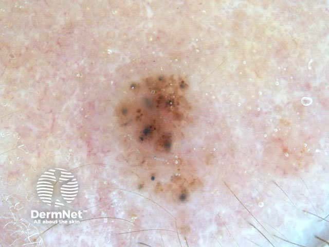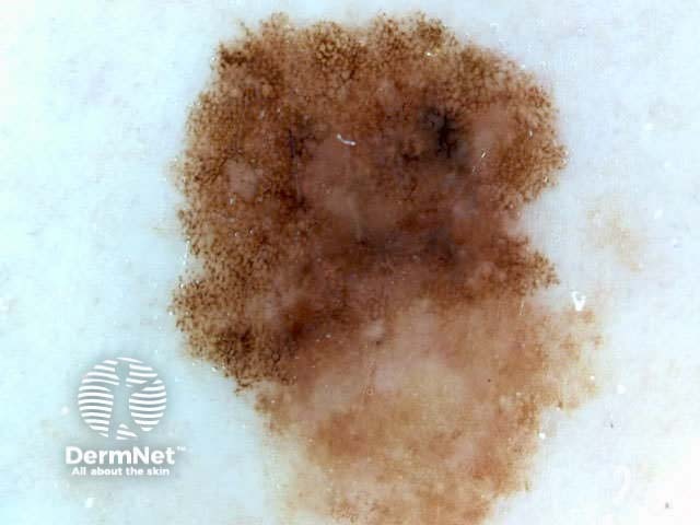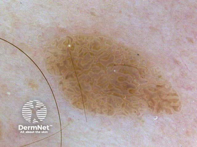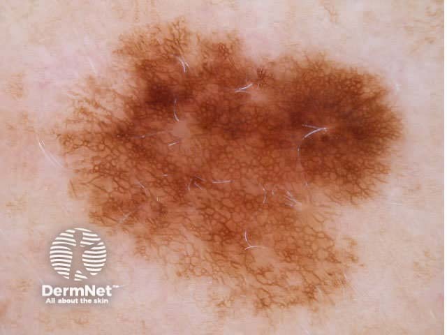 The term ‘pseudonetwork’ is used when annular pigmentation is seen around hair follicles on facial skin. At times on the face, it may be difficult to differentiate benign naevi, lentigo, actinic keratoses, lichenoid keratosis and early lentigo maligna.