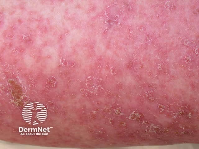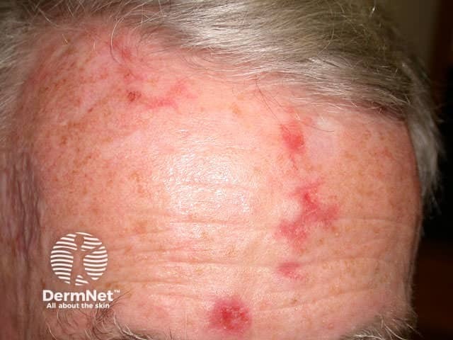 Normal skin may be unaffected by the treatment, or may develop a contact irritant or allergic dermatitis. This may be treated by discontinuing the fluorouracil and applying emollients and topical steroid cream.