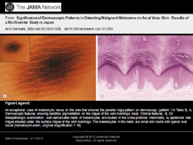 Dermoscopy of acral naevus showing parallel ridge pattern