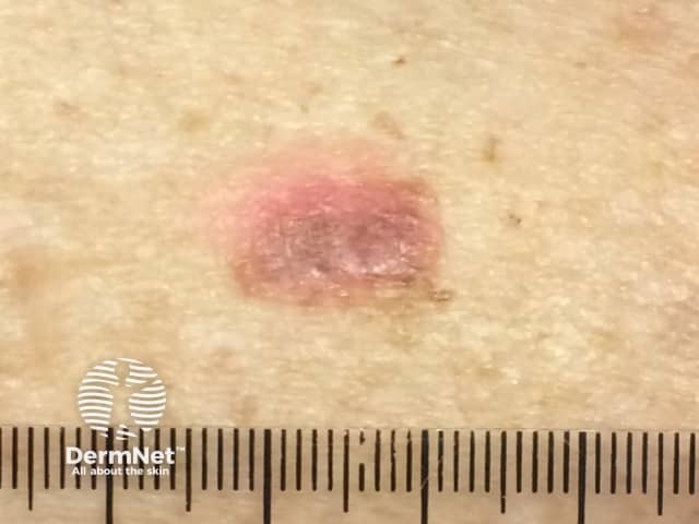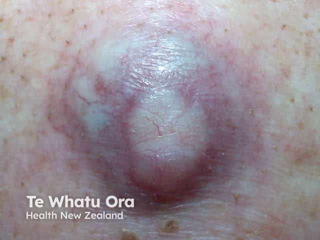 A pink-brown macule with a white central area - an amemanotic melanoma (AM-patient3)