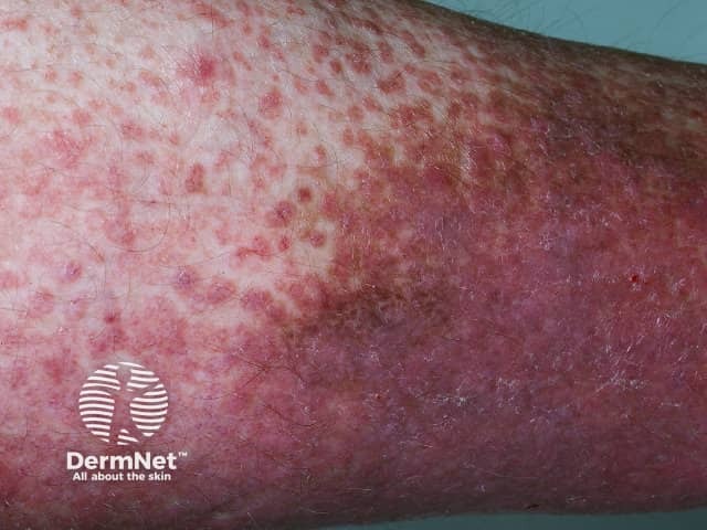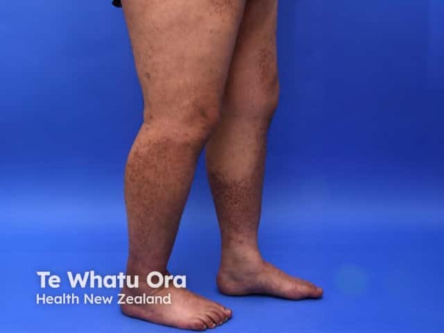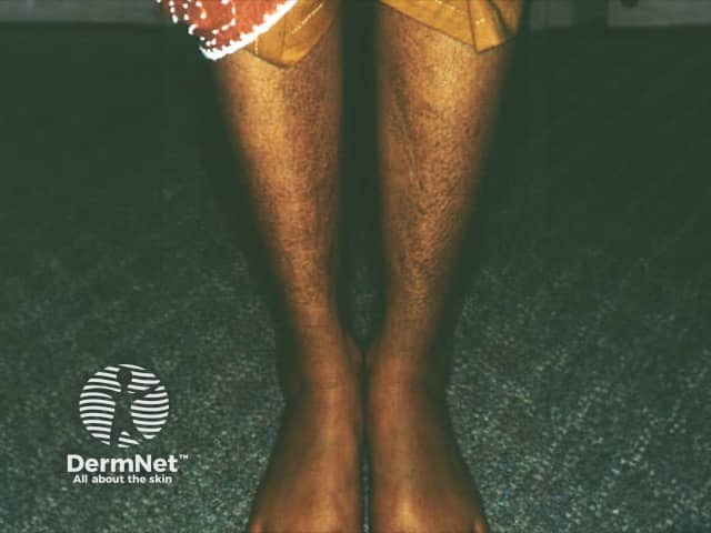 Extensive and confluent lesions of lichen amyloidosis on the shin