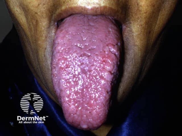 Nodules of amyloid on the tongue due to systemic AL amyloidosis (PCA-patient1)