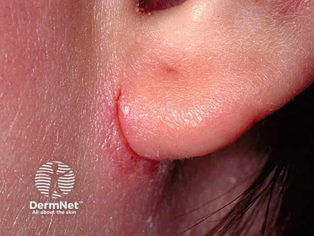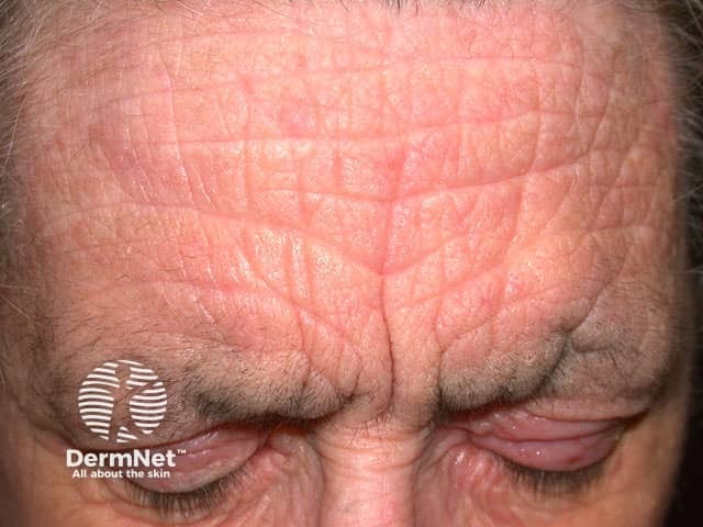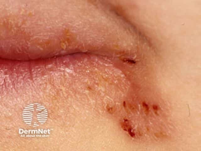 Patchy mild atopic eczema on the chin