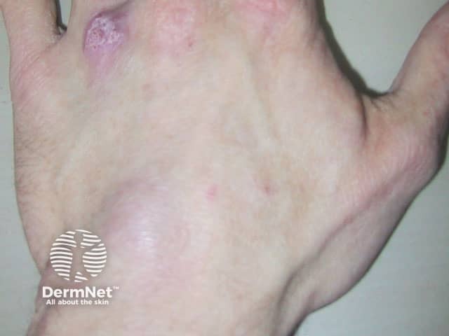 A plaque on the hand due to Mycobacterium marinum infection