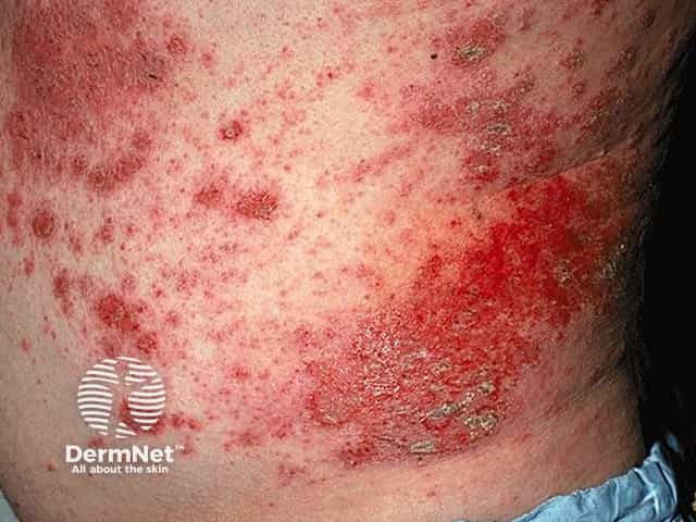 Scaling over discoid eczema in skin of colour (ND-patient2)