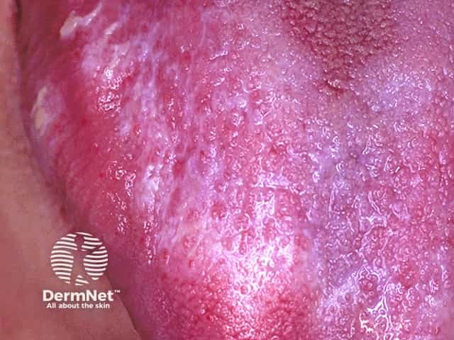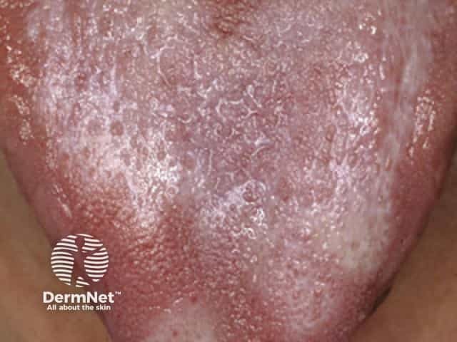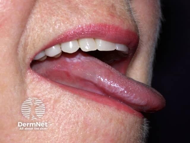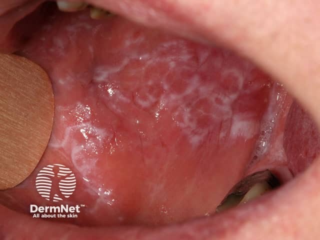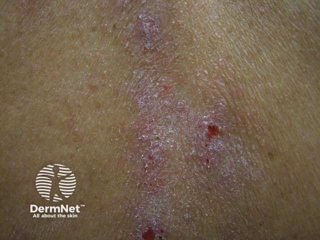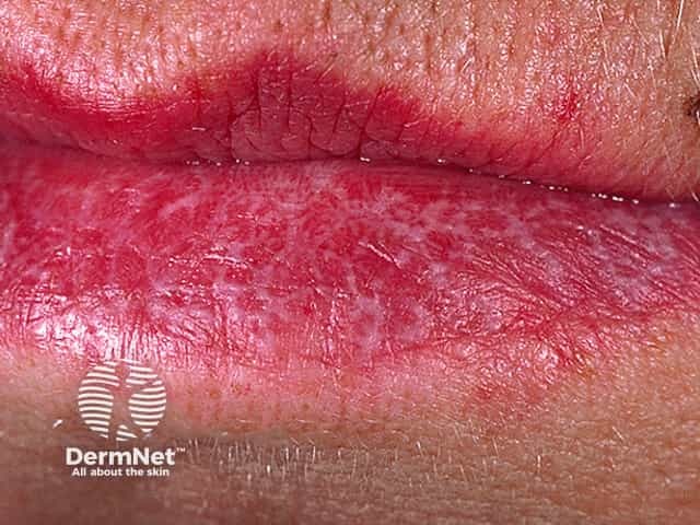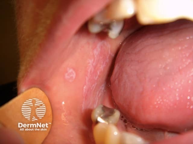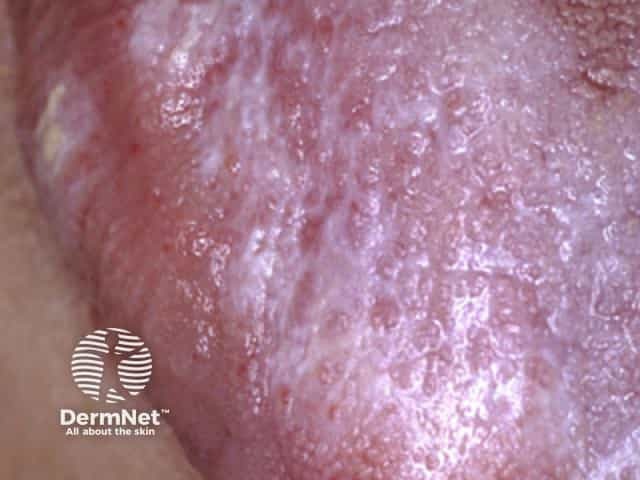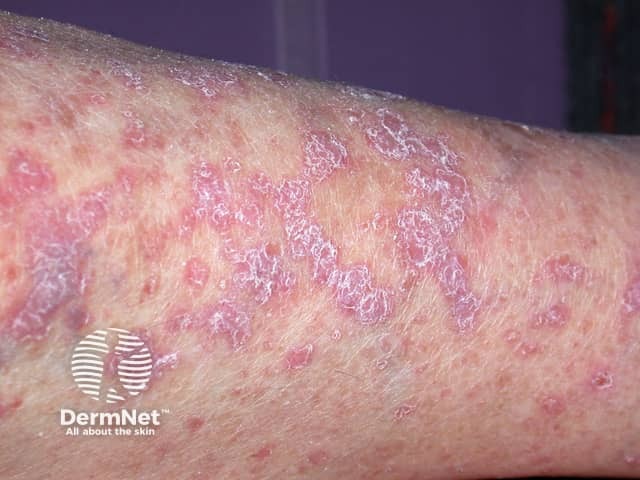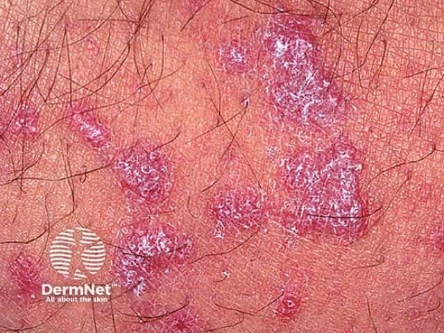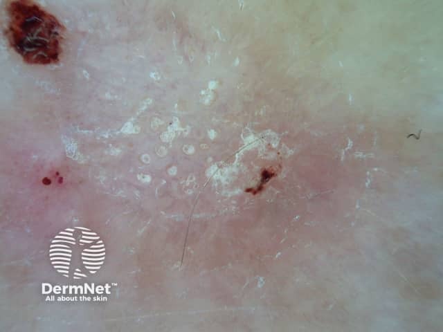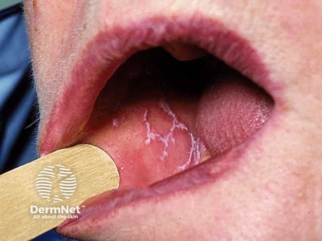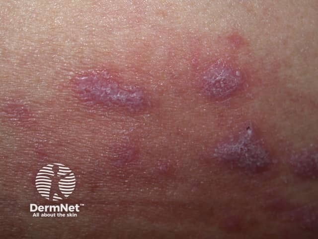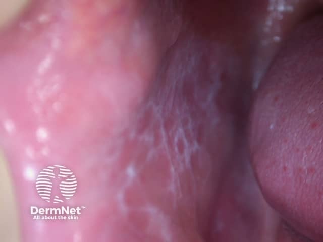 Close up of a plaque of lichen planus showing Wickham striae