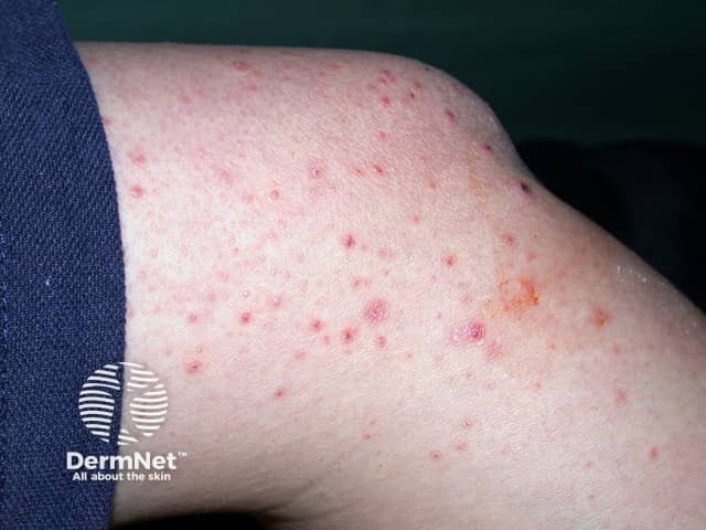 Papular lichen planus with a linear Koebner lesion due to a scratch