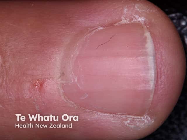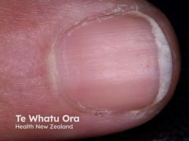 Nail lichen planus: onycholysis seen in 3rd and 5th fingernails