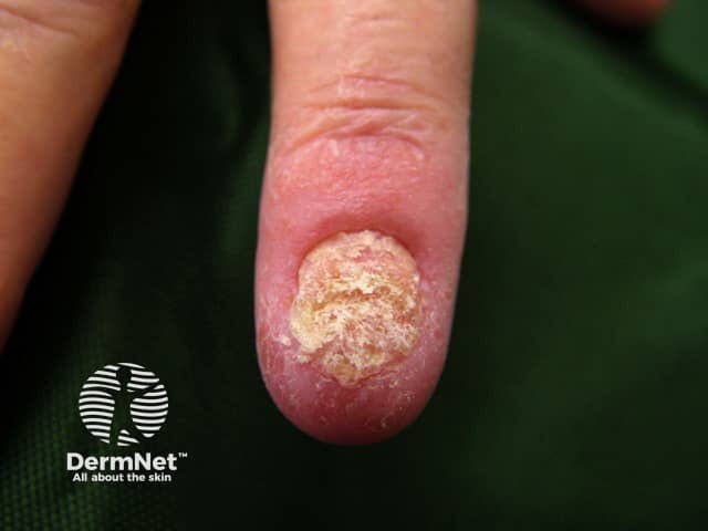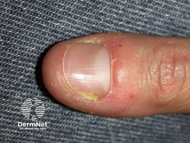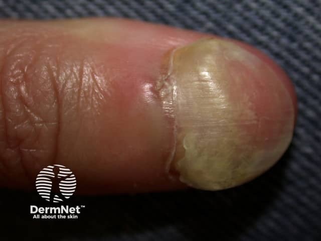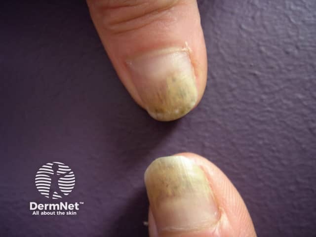 Superficial white onychomycosis - note the absence of thickening of the nail plate (ONYC-patient2)