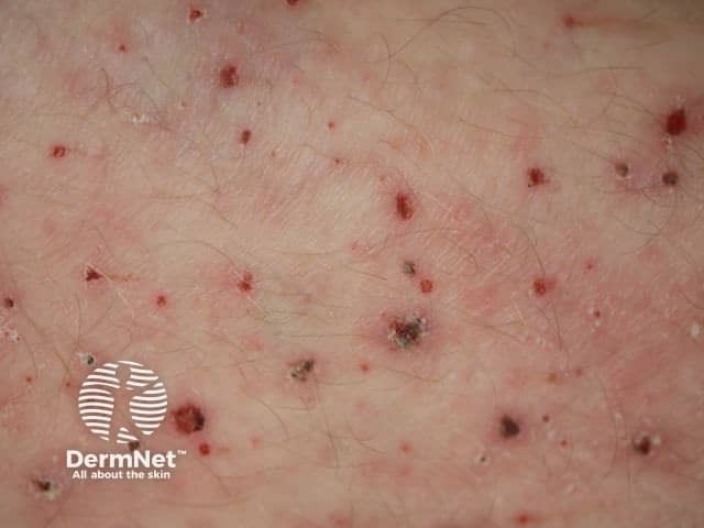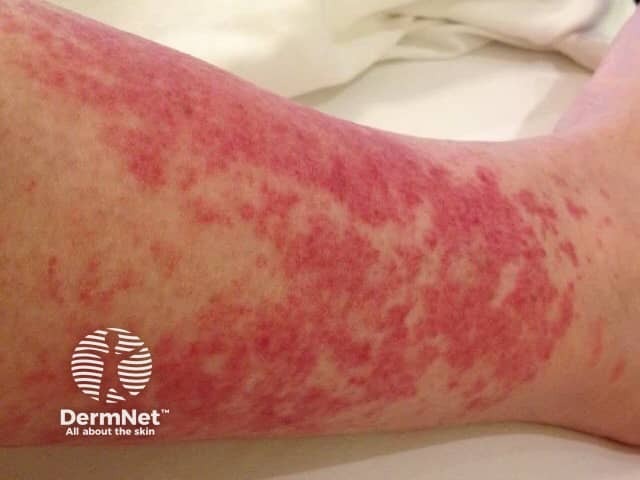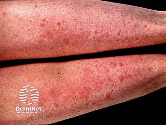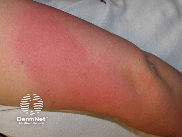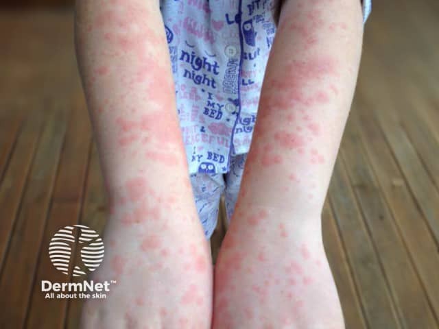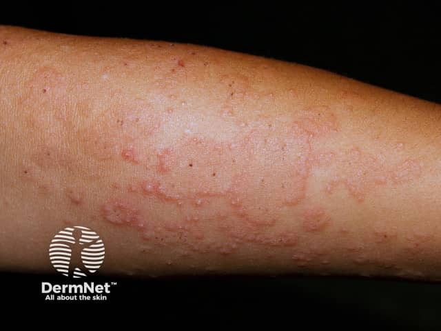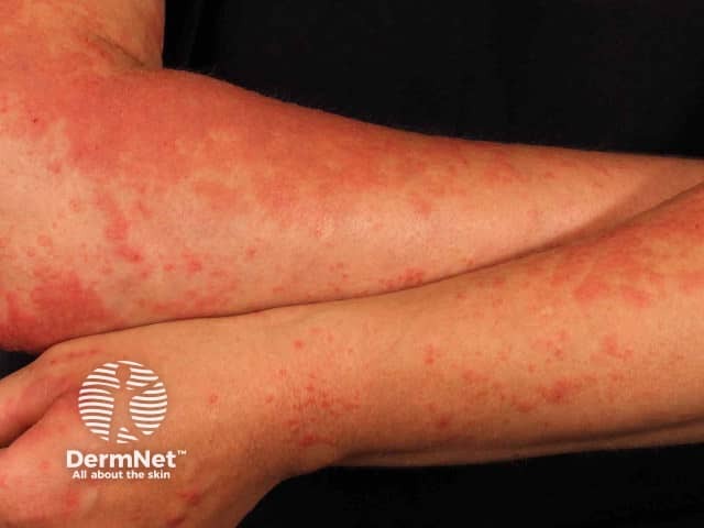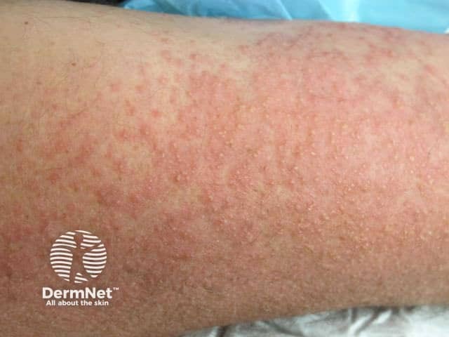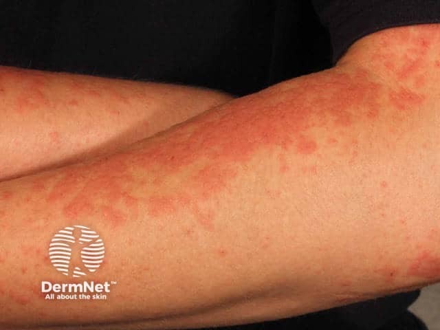 Papulovesicular polymorphic light eruption on the arm