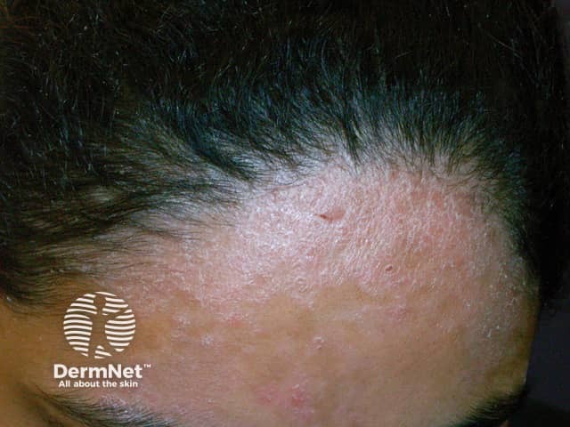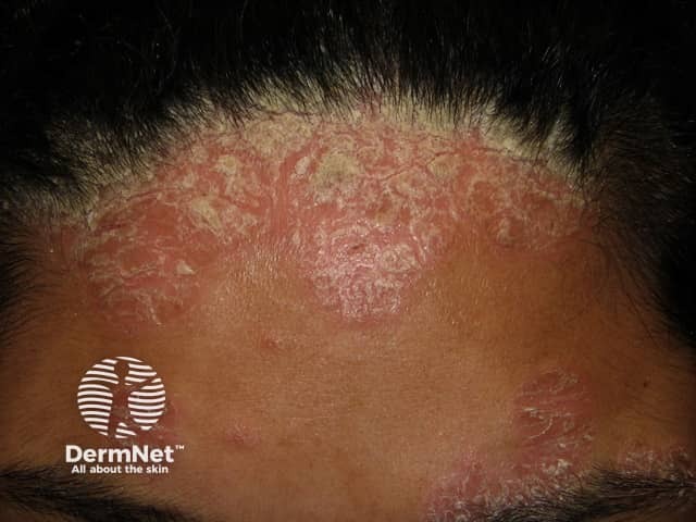 Psoriasis on the anterior hairline