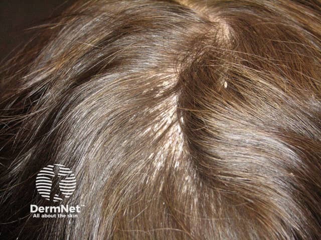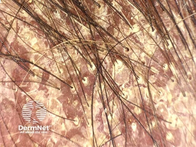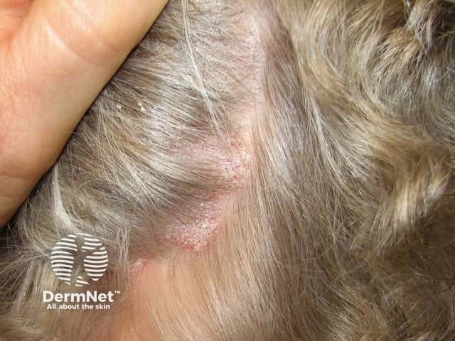 The classical silvery scale overlying scalp psoriasis