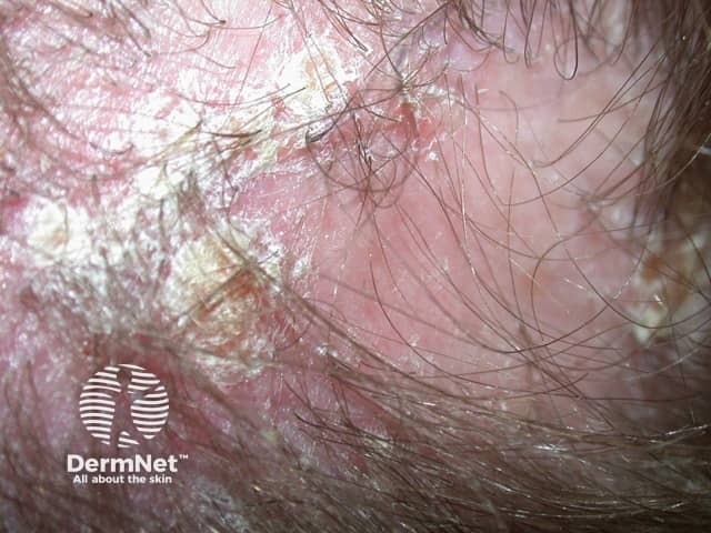Marked scaling in psoriasis of the scalp