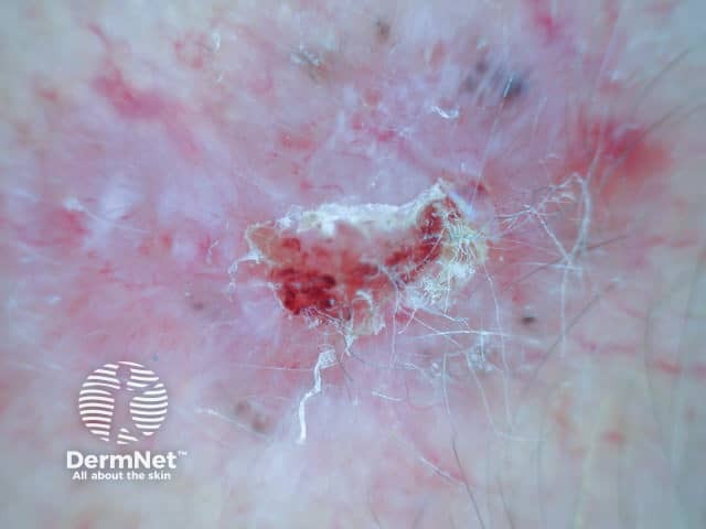 A recurrent basal cell carcinoma with a central old cryotherapy scar