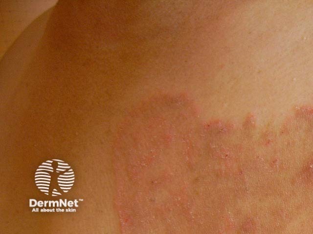 Tinea corporis presents with scaly plaques, which often (but not always) have a prominent border. Fungal infection is unlikely if there is no surface scale, when it will be difficult to obtain skin scrapings for mycological examination.