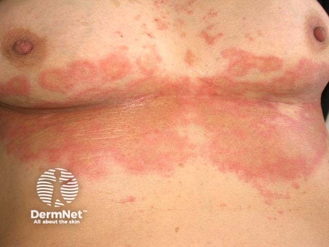 Most physicians are aware that tinea corporis (dermatophyte fungal infection) often presents with annular or ring-shaped lesions, hence the term ringworm. However, other ring-shaped plaques are frequently mistaken for fungal infection so it is very important to confirm the diagnosis by potassium hydroxide examination and fungal culture prior to the use of topical and/or systemic antifungal agents.