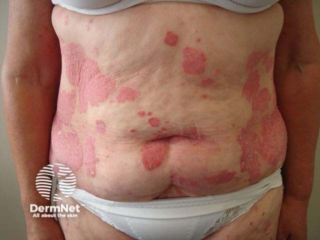 Chronic plaque psoriasis tends to be more prevalent, more severe, and more resistant to treatment in obese subjects. Recent understanding of the pathogenesis of psoriasis implicates TH1 cytokines, particularly TNF-alpha. TNF-alpha and other pro-inflammatory cytokines are produced by fat cells and induce insulin resistance.