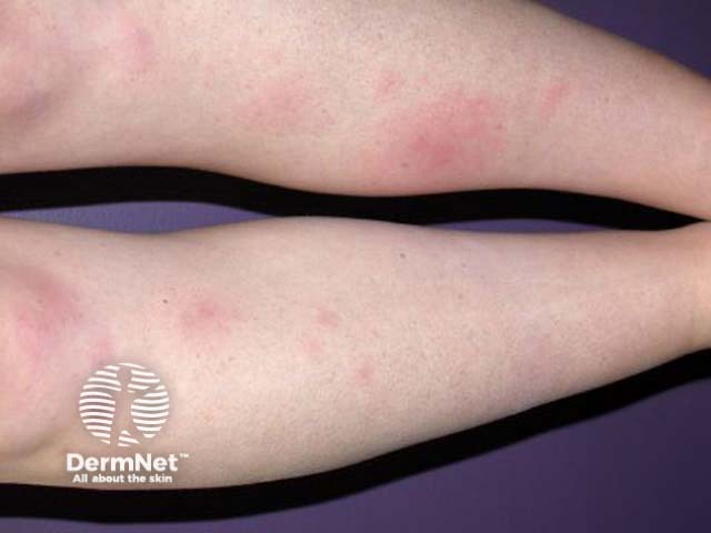 This is erythema nodosum. Inflammatory subcutaneous nodules are caused by panniculitis, or inflammation of the subcutaneous fat. Panniculitis may acute or chronic; lobular, septal or both; and associated or not associated with vasculitis – so biopsy is useful to distinguish these. Erythema nodosum is the clinical manifestation of an acute septal panniculitis without vasculitis. It is considered a reaction to an underlying systemic event. It is associated with infections (most often streptococcal infection), sarcoidosis, rheumatological diseases, inflammatory bowel diseases, autoimmune disorders, medications and malignancy. An association with pregnancy is well established, but the pathogenesis is not understood.