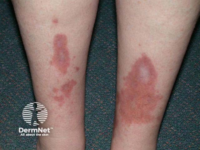 Necrobiosis lipoidica is often associated with diabetes mellitus. Although initial history did not reveal any specific health issues, her fasting blood sugar was found to be 10 mmol/L.
