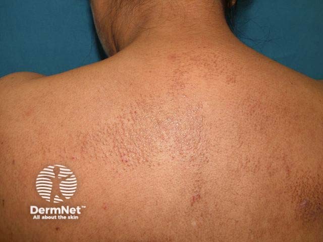 Lichen amyloidalis is rare in white-skinned individuals but common in those from the Indian subcontinent. Intensely pruritic monomorphous papules coalesce into plaques on the lower legs or upper back. They have the characteristic histological finding of amyloid deposition in the papillary dermis. Management is with potent topical steroids and strategies to reduce scratching.