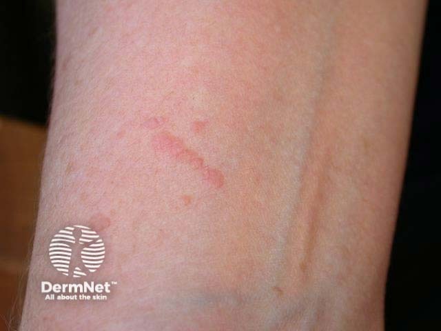 From time to time, we come across linear skin lesions. This can be very helpful diagnostically as there is a limited range of possible diagnoses. A careful history and examination of the morphology of the lesions usually sorts them out.