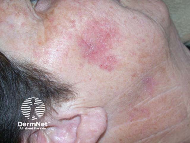 Treatment of choice for squamous cell carcinoma on the face may be photodynamic therapy, but such lesions are commonly managed by cryotherapy, 5-fluorouracil cream, imiquimod cream and surgery.