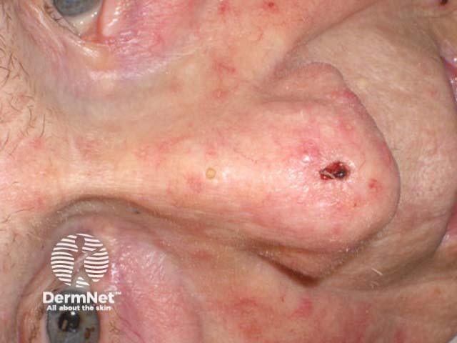 Nonmelanoma skin cancer and its precursors are relatively easy to recognise, and straightforward to treat when small and/or located away from the mid-face and lower legs. Yet their management is sometimes complex, requiring extensive surgery or expensive non-surgical treatment for multiple and/or recurrent tumours. Early diagnosis of enlarging, spontaneously bleeding, ulcerated or scaly nodules and plaques is essential. Promote active primary and secondary prevention – stay in the shade, wear a broad-brimmed hat and covering clothing and apply broad spectrum SPF30+ sunscreen to otherwise unprotected skin.
