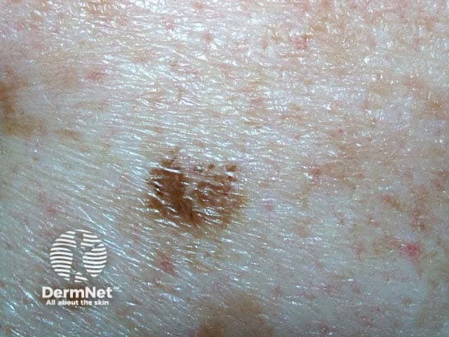 There are various kinds of lentigo (pl. lentigines). They tend to have a uniform colour but benign lesions may have some variegation in colour (tan, brown and black). They may evolve slowly or appear suddenly. There are several genetic syndromes associated with extensive lentiginosis.