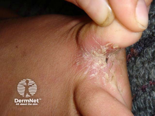 Although flexural psoriasis tends to be nonscaly, psoriasis between the toes tends to scale or peel, as illustrated by the patient whose athlete's foot failed to respond to antifungal agents. Scrapings were negative for fungal microscopy and culture.