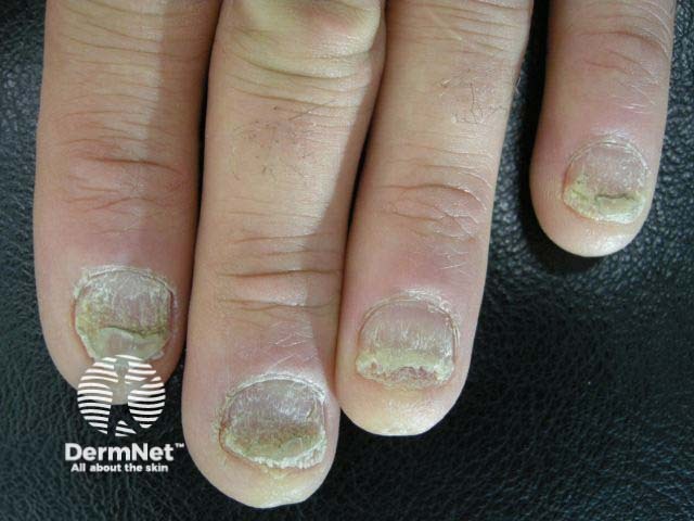 Nail dystrophy affects a third of patients with psoriasis and results in pitting, onycholysis, subungual hyperkeratosis, thickening and irregular ridging.