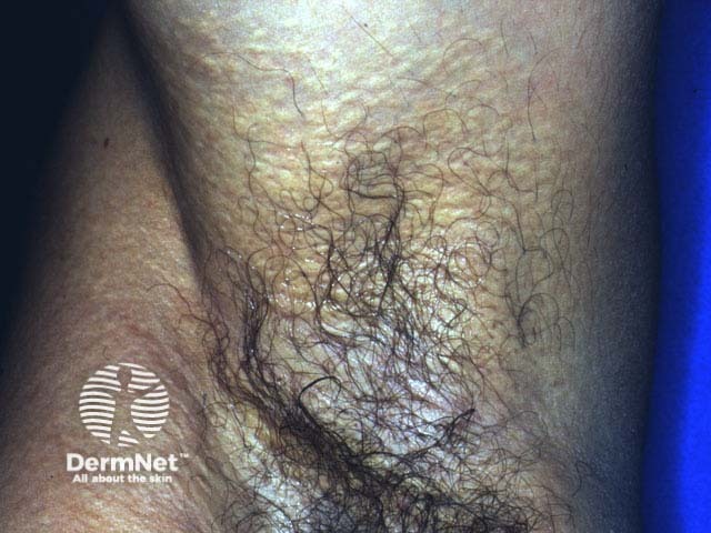 Yellowish papules and lax skin may be due to underlying pseudoxanthoma elasticum, when a similar appearance may be observed on the neck and antecubital fossae. This is an important group of familial disorders affecting elastic tissue of skin, blood vessels and the eyes. It is important to recognise to ensure that complications from blood vessel disease are dealt with promptly, and to provide genetic counselling.