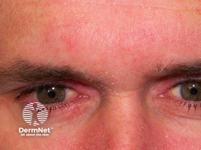 Seborrhoeic dermatitis, now thought to be caused by irritating substances produced by malassezia yeasts.