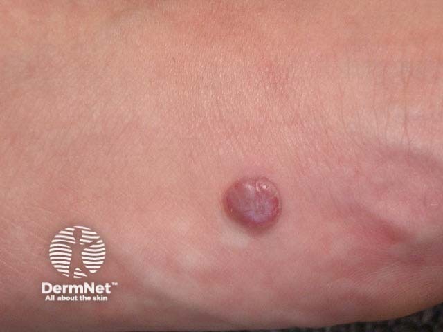 A pyogenic granuloma is a common acquired vascular lesion, particularly affecting young children and pregnant women. It is often found on lips, hands or feet. It may be precipitated by a minor injury or infection. Patients complain of profuse bleeding, so they are usually removed by electrosurgery or excision. Obtain histology – amelanotic melanoma may look similar!