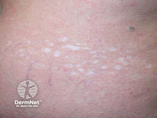 Name the skin condition causing the white mark/s.