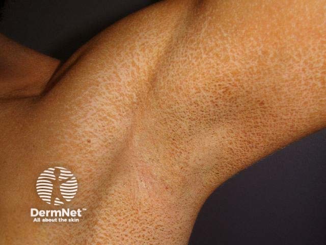 Artificial tan sprays, creams and solutions containing dihydroxyacetone have become very popular. Dihydroxyacetone combines with keratin to form the tan colour and is more pronounced where the stratum corneum is thicker e.g., palms, soles and knees, and on solar lentigos and seborrhoeic keratoses. It also stains hair (xanthotrichia). It peels off as the skin is shed, initially in the flexures. Drugs that may impart a yellow colour to the skin include quinacrine (an antimalarial) and canthaxanthine (sun tan pill).