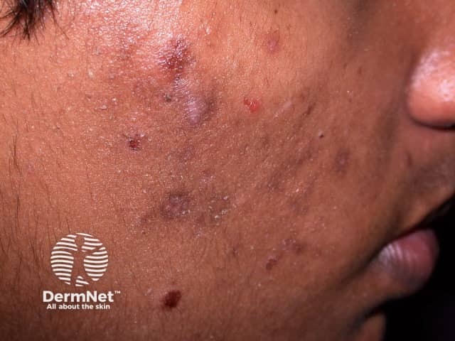 Mixed comedonal and inflammatory facial acne in skin of colour