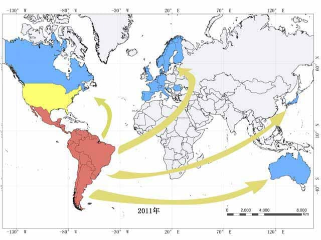 American trypanosomiasis is endemic in the southern half of the United States, and 21 countries in South and Central America. It has spread to at least 19 non-endemic countries including through Europe and the Asia-Pacific due to migration and international travel. An estimated 8–10 million people worldwide have Chagas disease, including approximately 500,000 in the US and 100,000 in Europe. In Latin America alone there are 28,000 new cases each year. The WHO estimated more than 16 million people migrated from endemic areas to non-endemic countries between the years 2000 and 2009. Active transmission has then occurred in several non-endemic countries. The majority of cases in non-endemic countries are adult Latin-Americans, most of whom are unaware of their diagnosis. Serological studies in Europe have shown an overall prevalence of 4% in immigrant Latin Americans, and 18% in Bolivians. In 2006, New Zealand had 6315 permanent residents born in endemic countries, with an estimated prevalence of Chagas disease of 98 cases. In 2011, Australia had a predicted 1928 cases in 116,430 migrants.