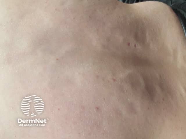 If a skin biopsy is required, it should be taken as a deep wedge across the border to include both involved and uninvolved skin down into the subcutis as the changes on histology are subtle: