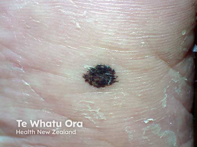 Appropriate diagnosis of calcaneal petechiae is important as the condition may mimic benign or malignant melanocytic lesions, including acral lentiginous melanoma. Other diagnoses to consider may include viral warts and traumatic tattoo.