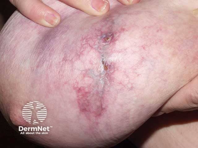 Diffuse dermal angiomatosis of the breast tends to follow a recurrent course of episodic painful ulceration. Surgery for peripheral vascular disease or large pendulous breasts can lead to permanent remission.