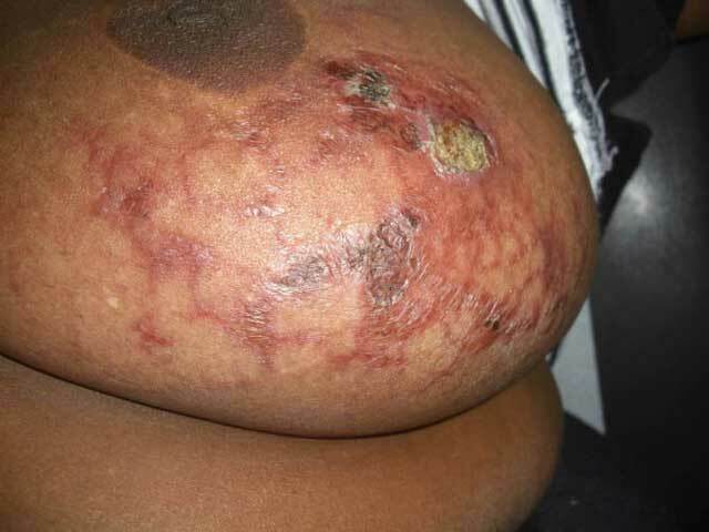 Diffuse dermal angiomatosis of the breast has been reported in African American women as violaceus to erythematous reticular plaques with induration and ulceration. Telangiectatic vessels may be more difficult to appreciate in skin of colour.