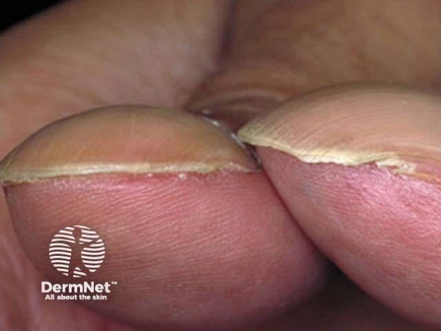 To determine if clubbing is present, flex the fingers of both hands. Bring the index fingers together until the distal phalanxes are touching. A diamond space between them (Schamroth's window) means the nails are not clubbed (Schamroth's sign).