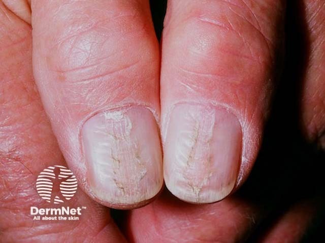 Median canaliform nail dystrophy is mainly of cosmetic concern, however the splits in the nail can catch on clothing.