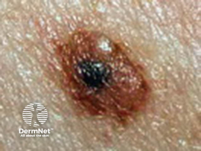 Recurrent naevus refers to the reappearance of pigment in a scar following surgical removal of a mole – this may have an odd shape. |
