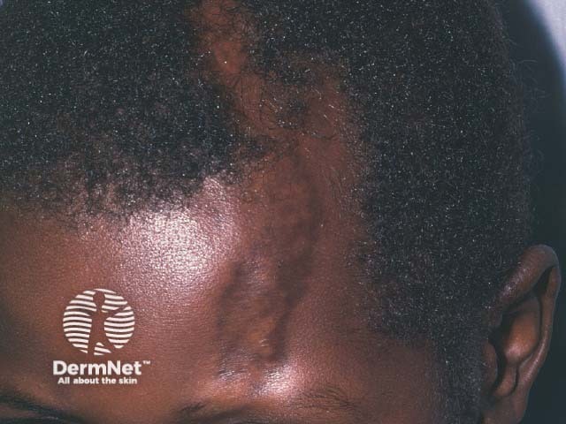 Linear cicatricial alopecia in morphoea en coup de sabre