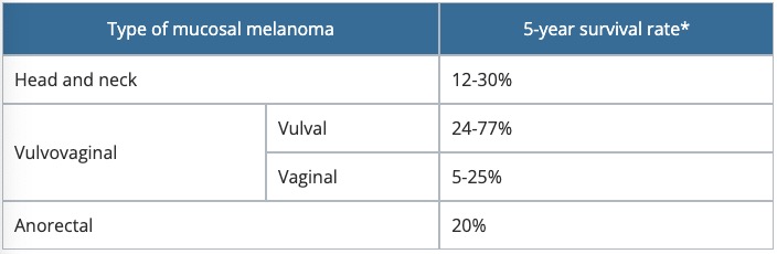Mucosal melanomas have a poor prognosis, as most patients develop metastases despite aggressive therapy.