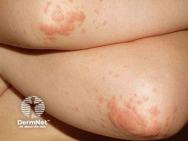 Other names used for this skin condition include Gianotti-Crosti syndrome, papulovesicular acrodermatitis of childhood, infantile papular acrodermatitis, and acrodermatitis papulosa infantum.